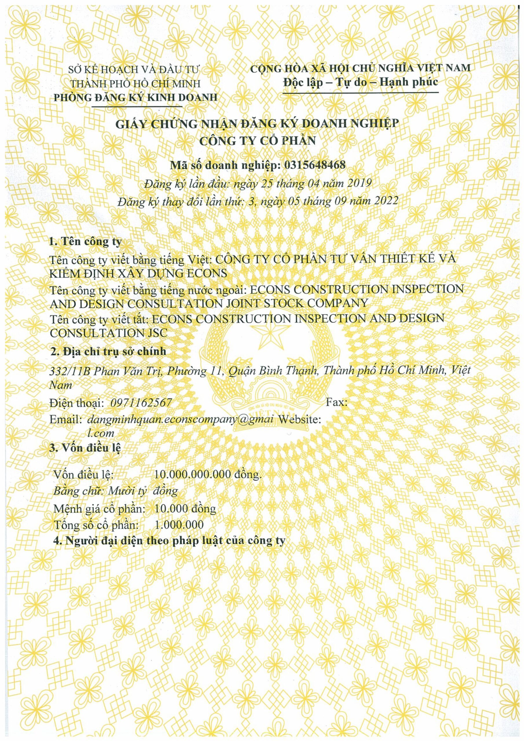 CÔNG TY CỔ PHẦN TƯ VẤN THIẾT KẾ VÀ KIỂM ĐỊNH XÂY DỰNG ECONS